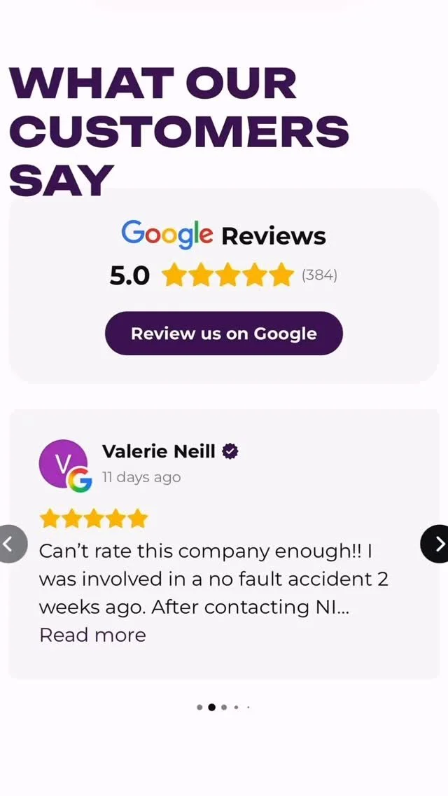 At NI Accident Management, we guide you through every step after an accident, making the process simple and stress-free. From claims handling to repair co-ordination, our expert team ensures you get the support you need quickly and efficiently. We work tirelessly to get you back on the road and minimise disruption to your life. With professional advice, clear communication, and personalised service, you can feel confident every step of the way. Need answers? Visit our FAQ’s page to learn more about how we can help you recover with confidence and peace of mind.